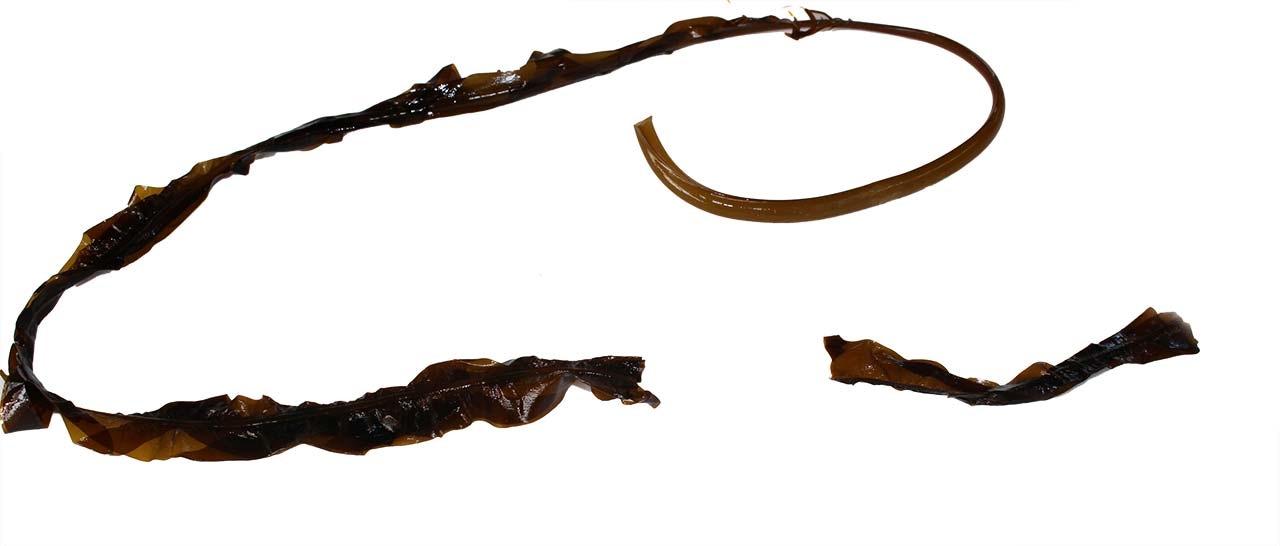 “尻尾”と呼ばれるワカメの端の部分は、すこし味が落ちる部分です。下記の写真のように10㎝前後切り落とすことをオススメします。